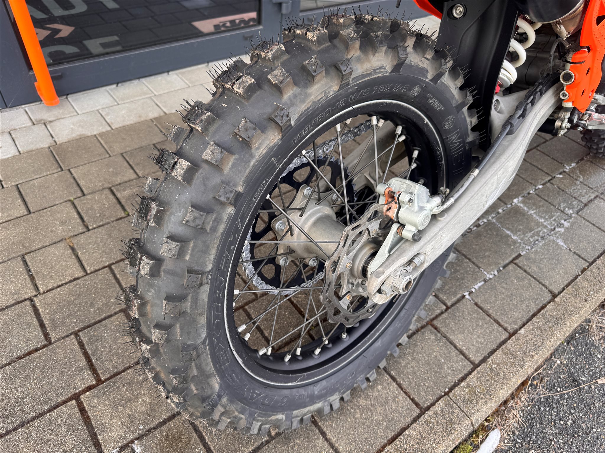 Technisch ist die EXC in seht gutem Zustand. Wir haben ein Motorservice durchgeführt mit Kolbentausch. Weiters wurde der Antriebssatz, Bremsbeläge erneuert. Service an Federbein und Gabel durchgeführt.