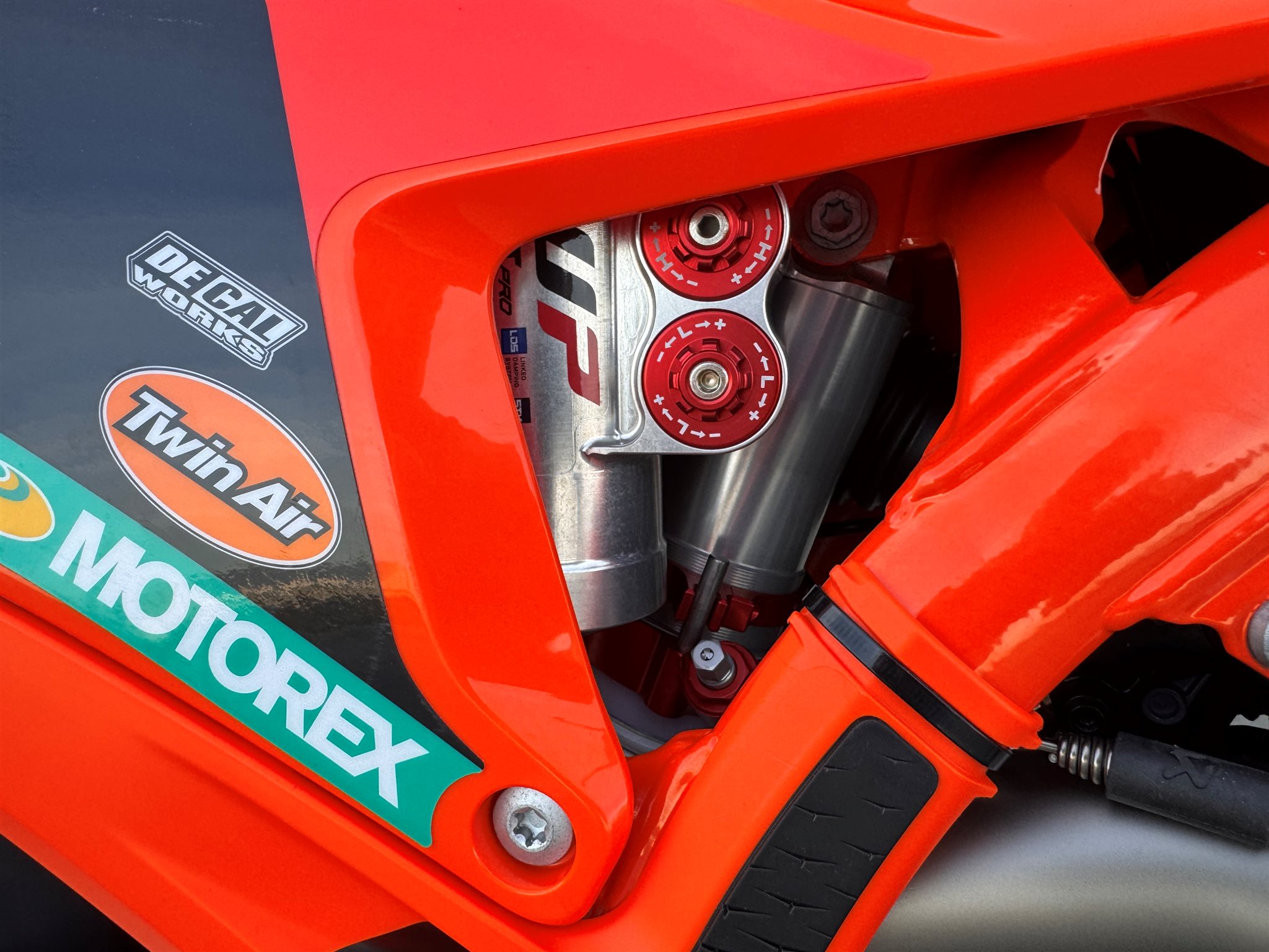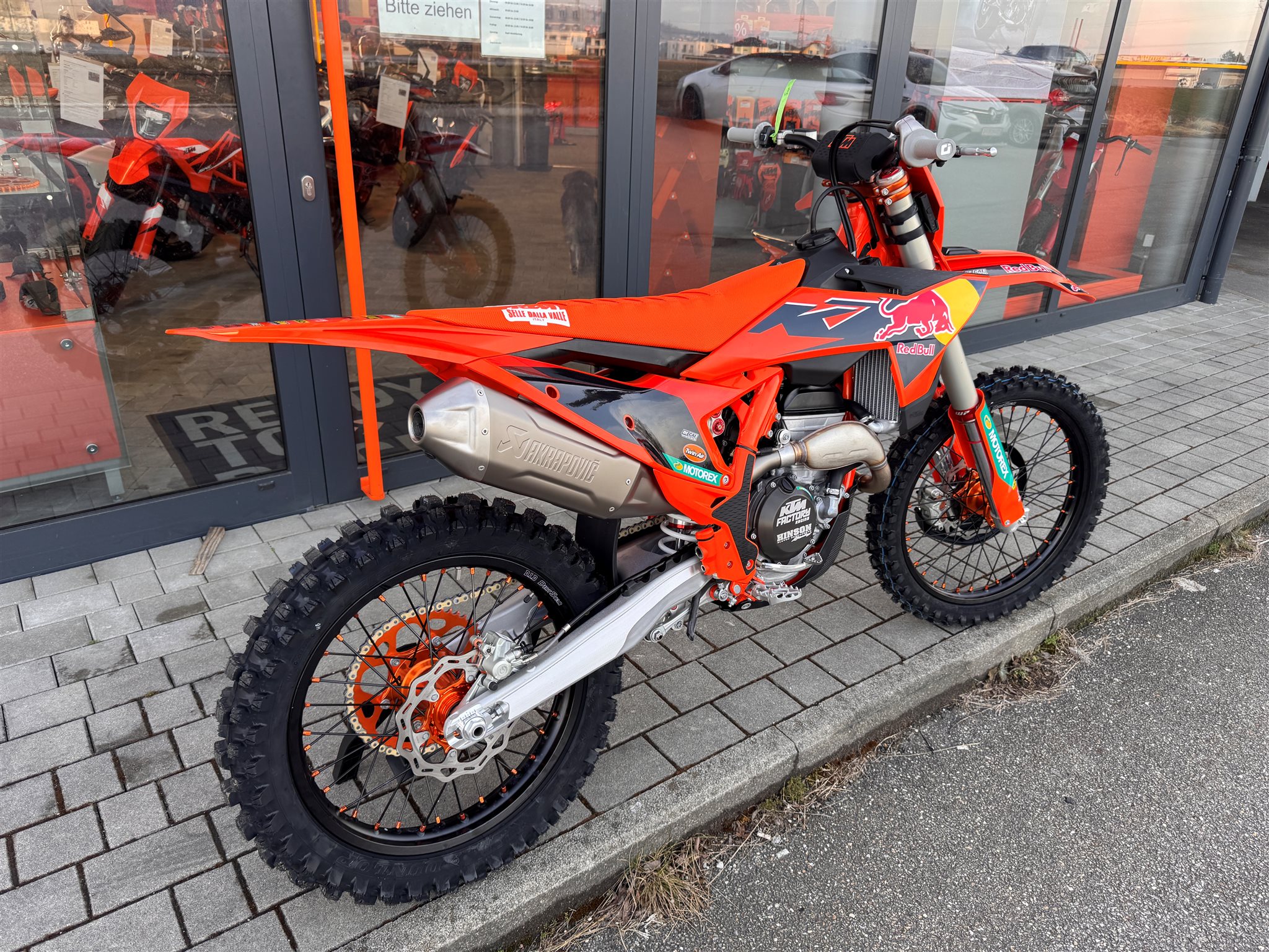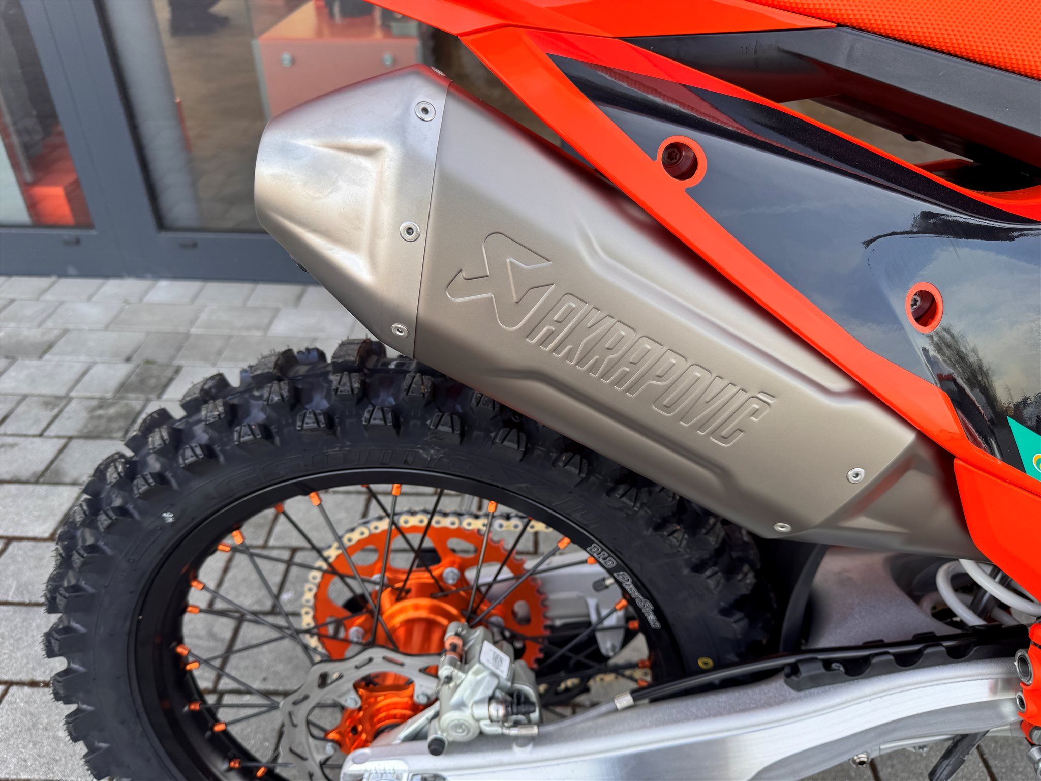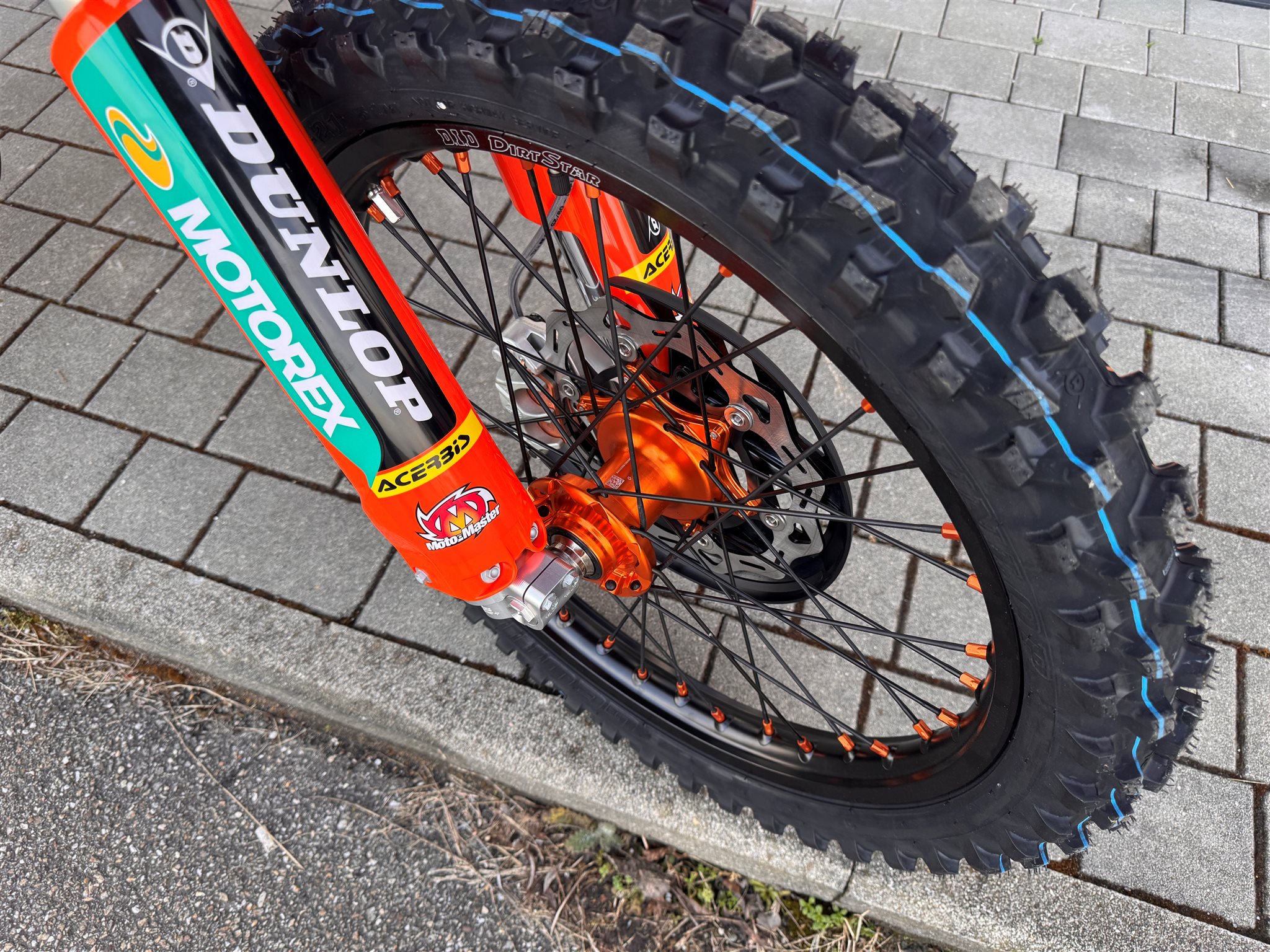 - Factory-Radsatz (D.I.D DirtStar Felgen, schwarze Speichen mit orangenen Speichennippel)